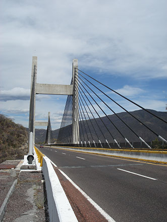 - Distribución: Puente Vehicular de 424 m de longitud total, constituido por dos claros laterales de 94.5 m de longitud y un claro central atirantado de 213 m. La totalidad de Claros fueron ejecutados en su totalidad mediante tipología de concreto hidráulico.